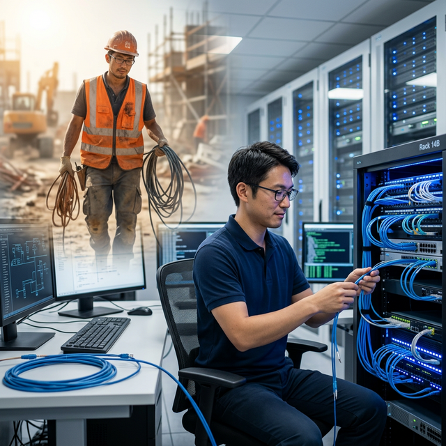「自分には配線しかできない」「パソコンなんて、竣工図を見るくらいだ」——それは大きな誤解です。実は、電気工事士の頭脳と手先こそ、ITインフラの世界では「最強の素質」なのです。