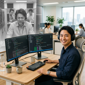 IT業界のエンジニアやサポート職は、基本的に「既存のシステムを守る・作る」仕事であり、個人に対する営業ノルマはありません。上司から「今月はあと何件契約を取れ!」と詰められるストレスから解放され、目の前の技術や課題解決に100%集中することができます。