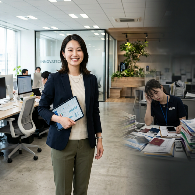 パスポートのスペル1文字のミスすら許されない緻密な手配業務。この「ミリ単位の正確性」は、ITシステムのインフラ監視やテスト業務において「手順通りにミスなく作業できる」という最高評価に直結します。